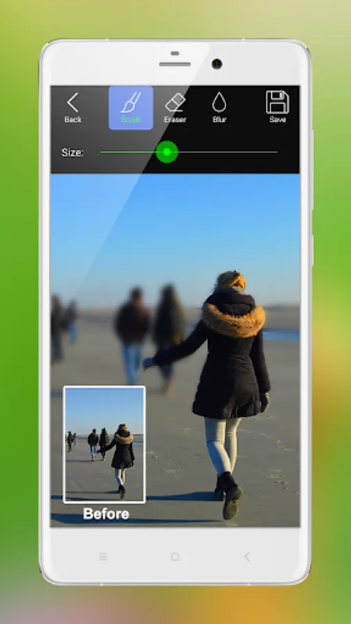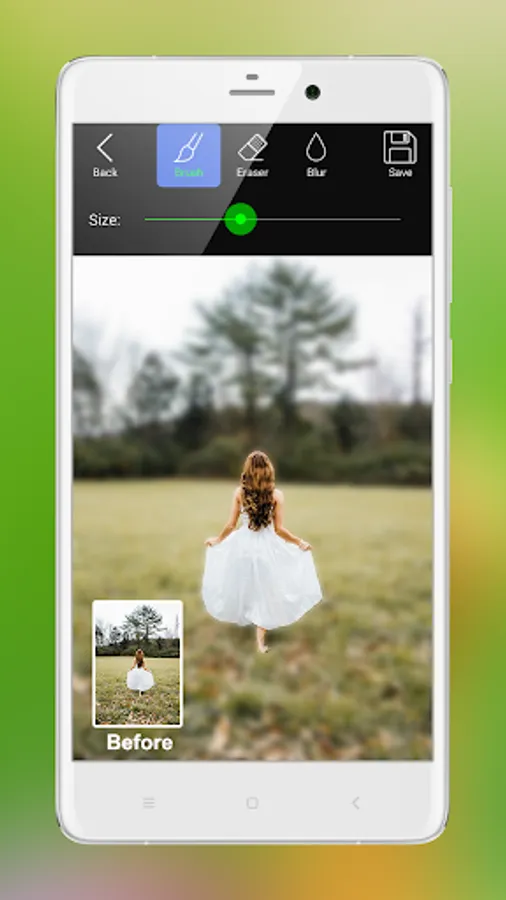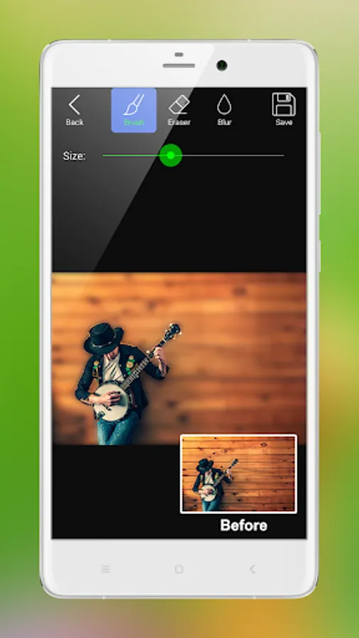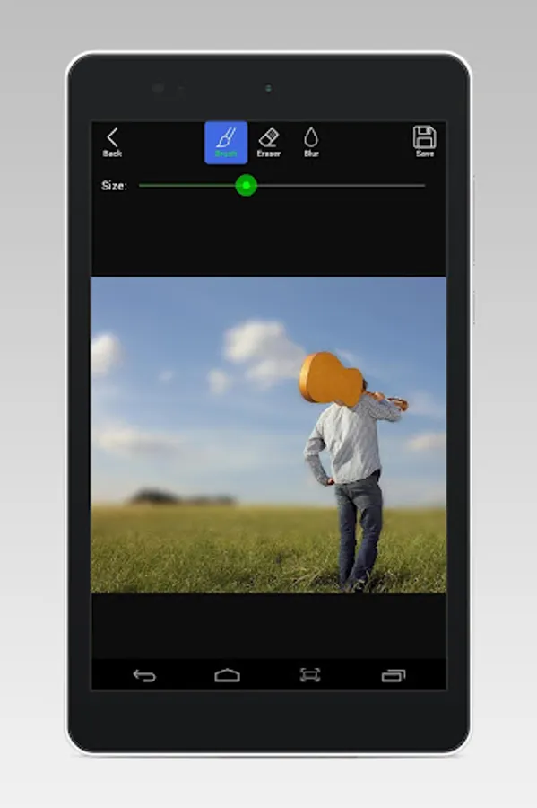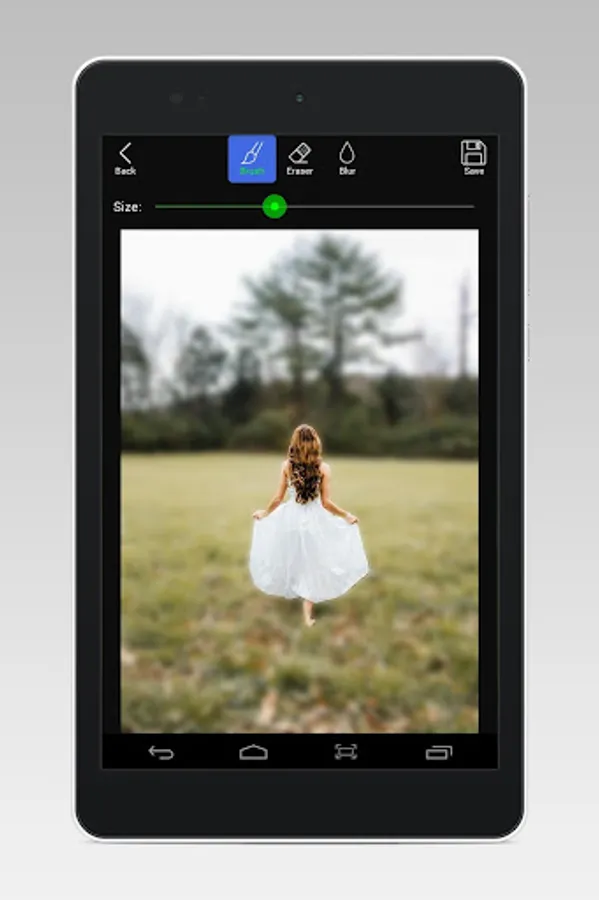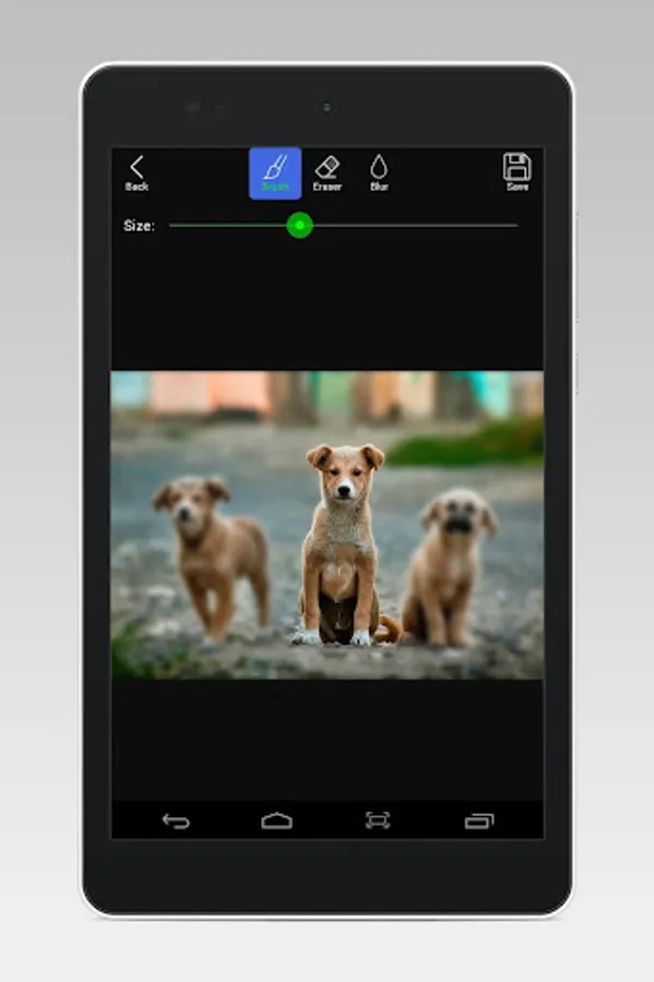 With this app, you can change the brush/eraser size, you can adjust the blur intensity, and you can save the image and share it to social media like Facebook, Instagram, Whatsapp,etc.
