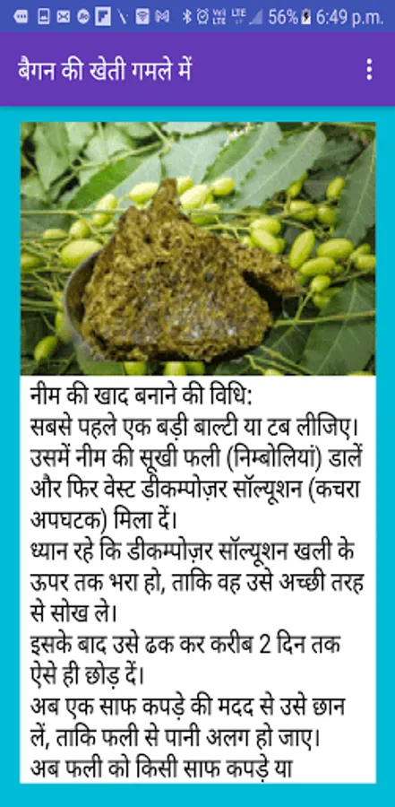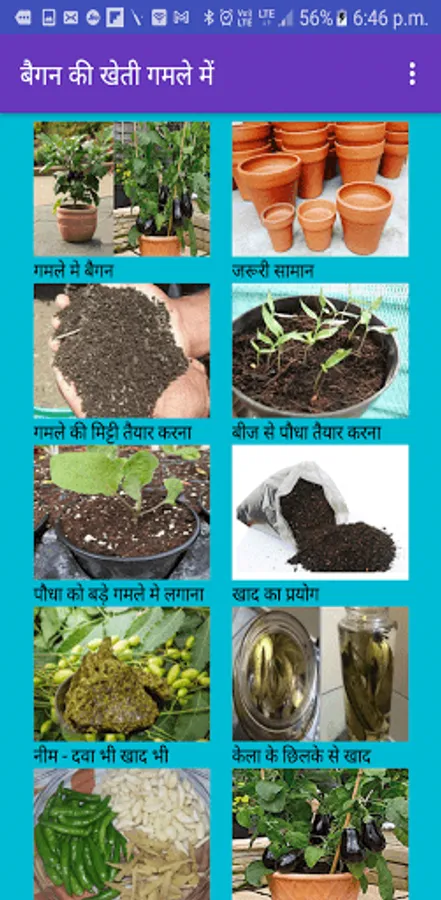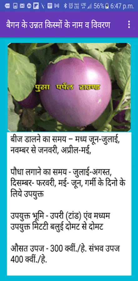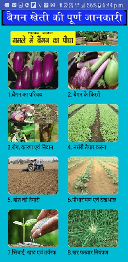 Baigan Ki Kheti के इस app में आपको निम्नलिखित बिन्दुओ पर अच्छी सामग्री मिलेगी -