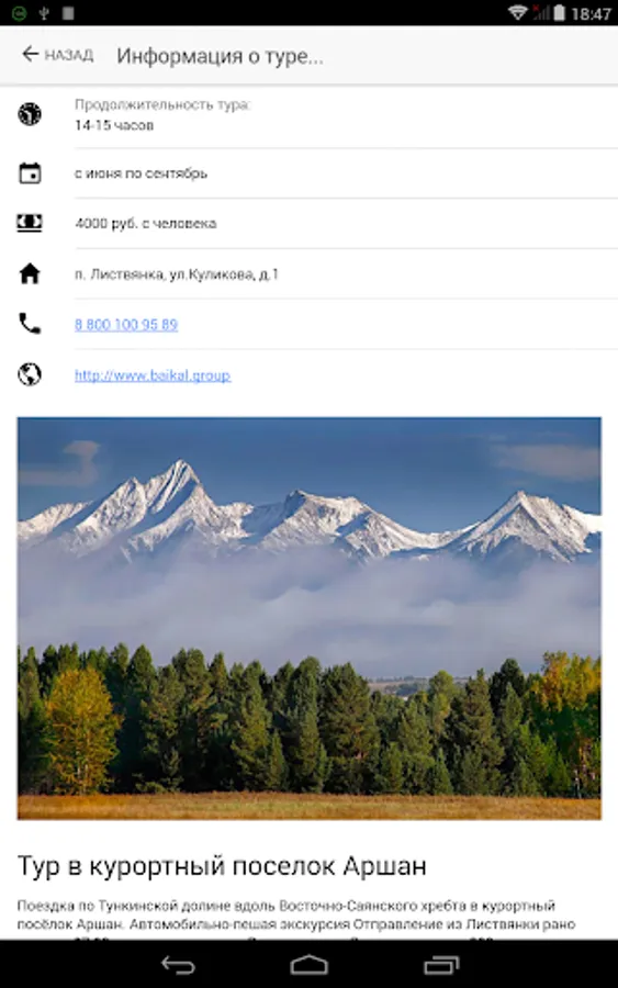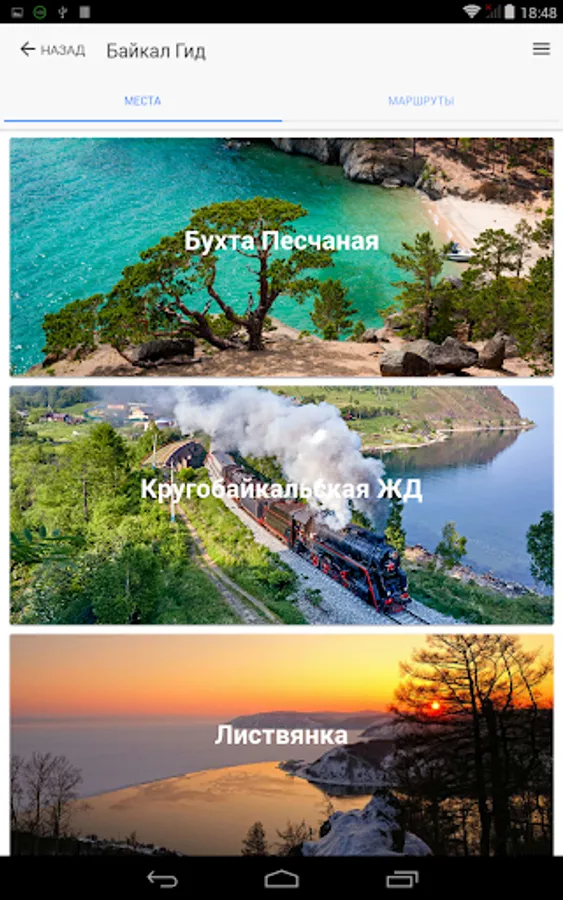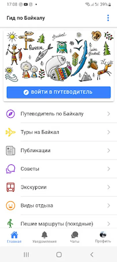 The Baikal Guide app is a detailed guide to Lake Baikal. This application contains all the information about recreation and tourism on Lake Baikal: places, interesting routes, attractions, maps, advices, online chats with guides, interesting scientific and historical facts, events on Lake Baikal and much more. Using this application, you can ask a question in real time and get a complete answer from professional guides. All information is added and changed by professional guides who live and work on Lake Baikal. Welcome to Baikal!