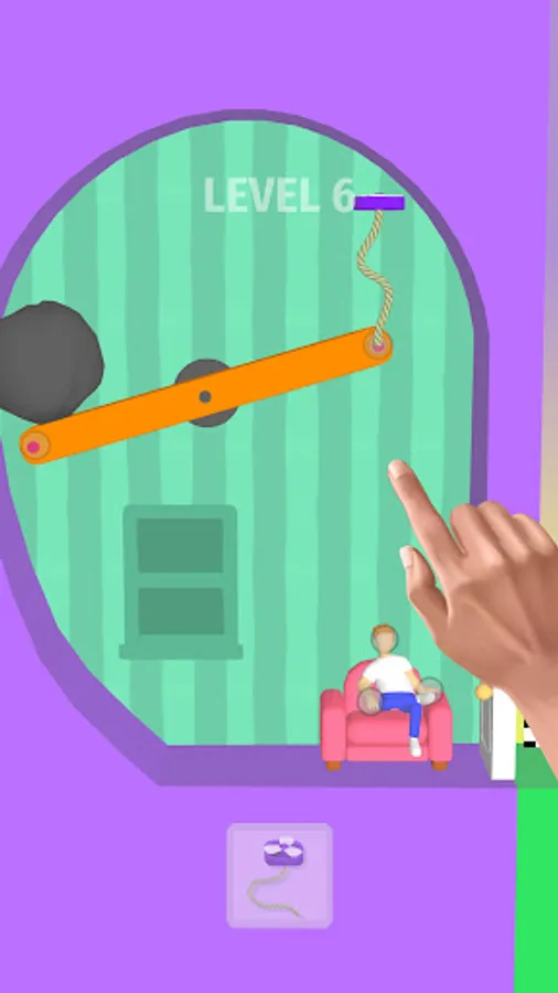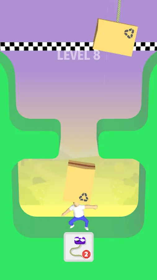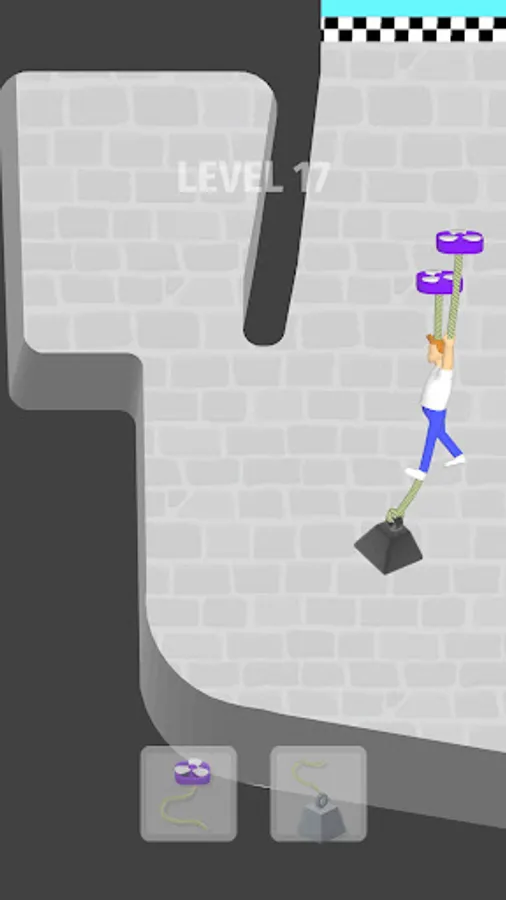 Take the man to the finish line. Use ropes, propellers, dynamite, springs and all the laws of physics. Be careful not to hurt the man. Great flying propellers on ropes!