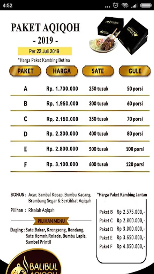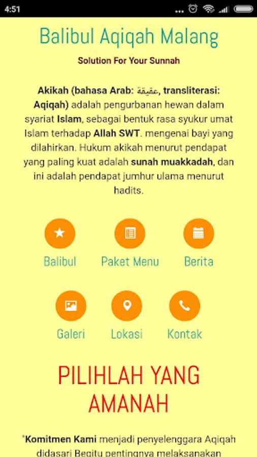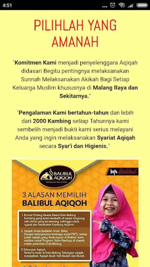 "Our years of experience and more than 2000 goats every year we slaughtered is evidence that we are serious in serving those of you who want to implement Shari'a Aqiqah Sharia and Hygienic."