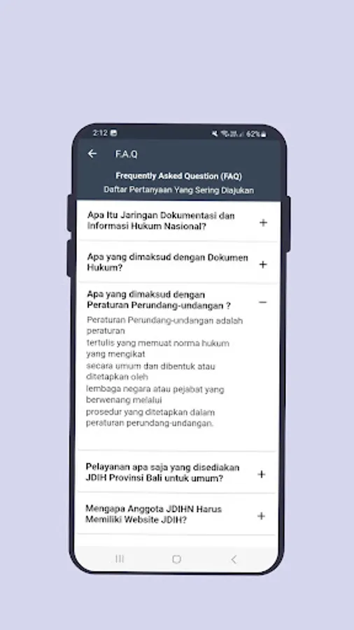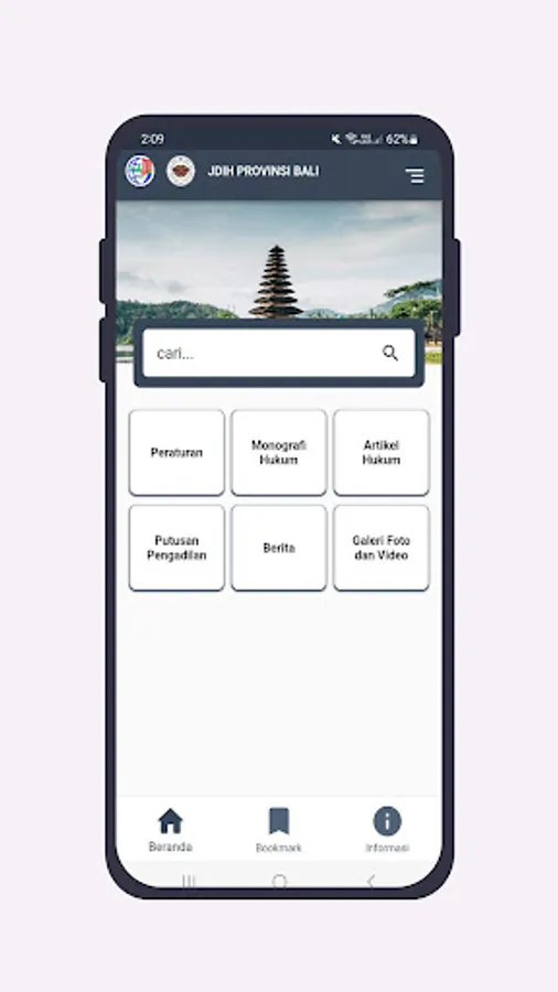 The Bali Province JDIH Mobile Application provides legal information services which include regional legal products (Bali Governor Regulations, Bali Province Regional Regulations, Governor Instructions), legal monographs, and legal information (legal articles, court decisions, draft regional legal products, circulars and memoranda of understanding/cooperation in the province.
