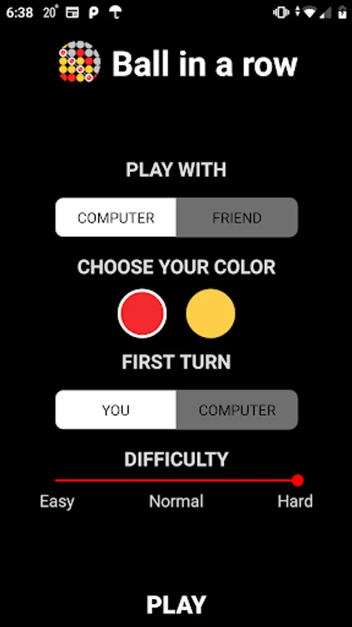 • Three levels of difficulty, the choice of the first move, the choice of color balls.