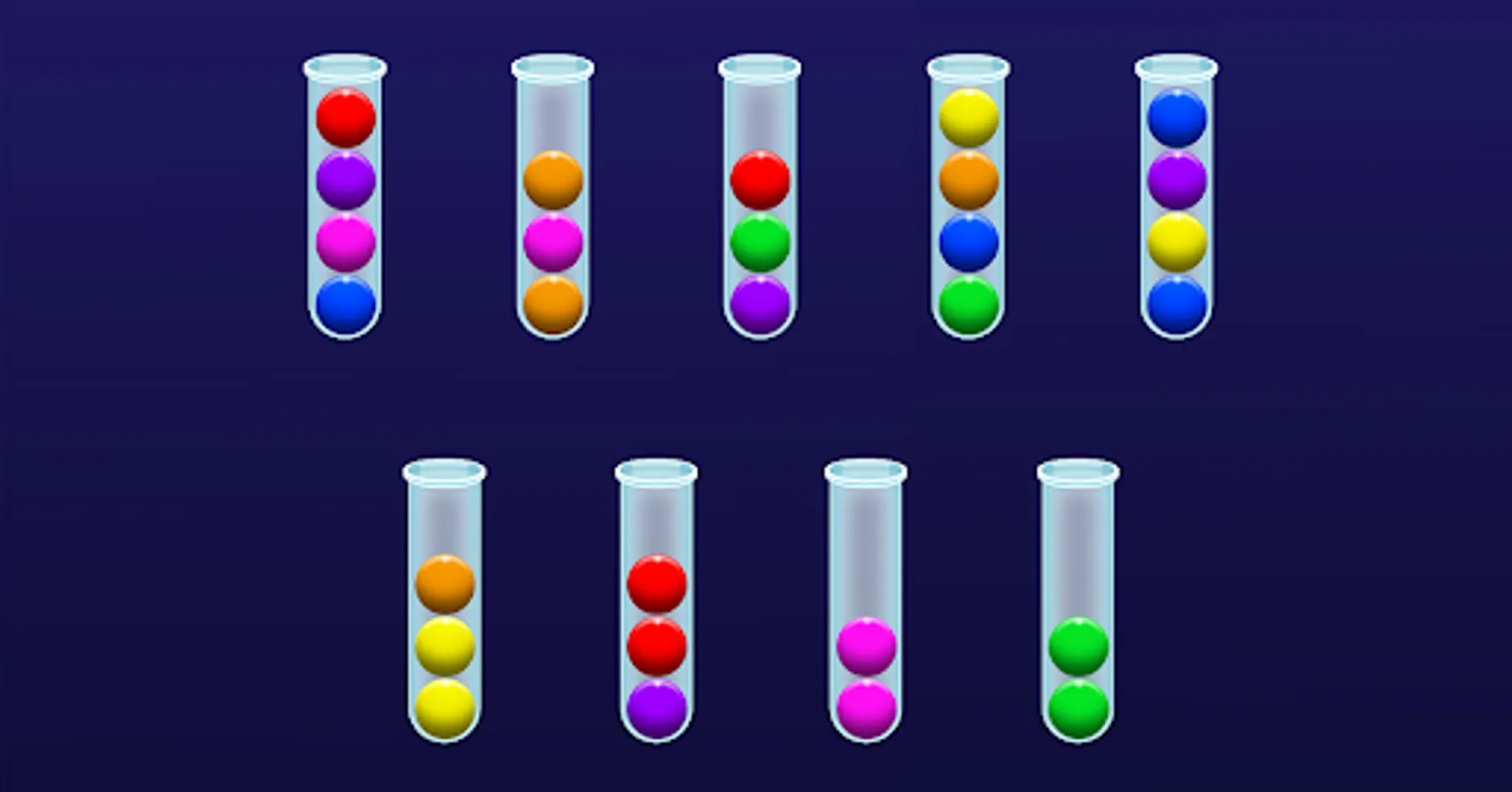 • Sort the colorful ball in the bottle until all colors in the same bottle.
