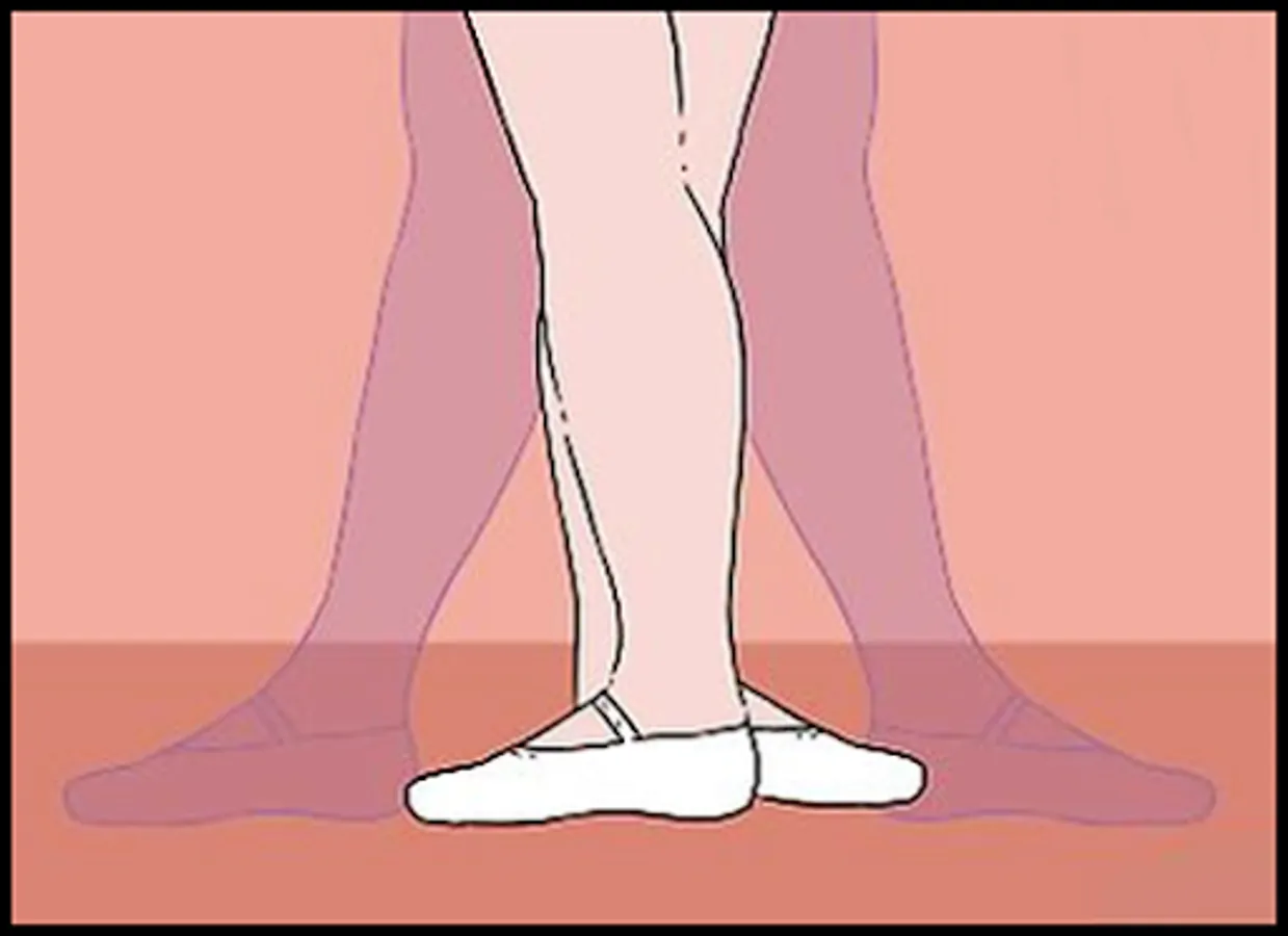 - In the first position the heels are together and the feet are turned outwards