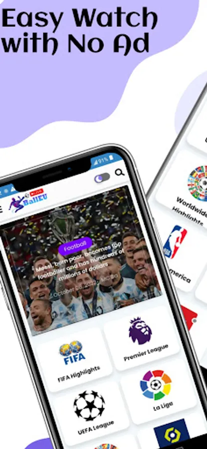 Live streaming with football highlights at the Top 5 European football leagues, America Sports, and Asia.