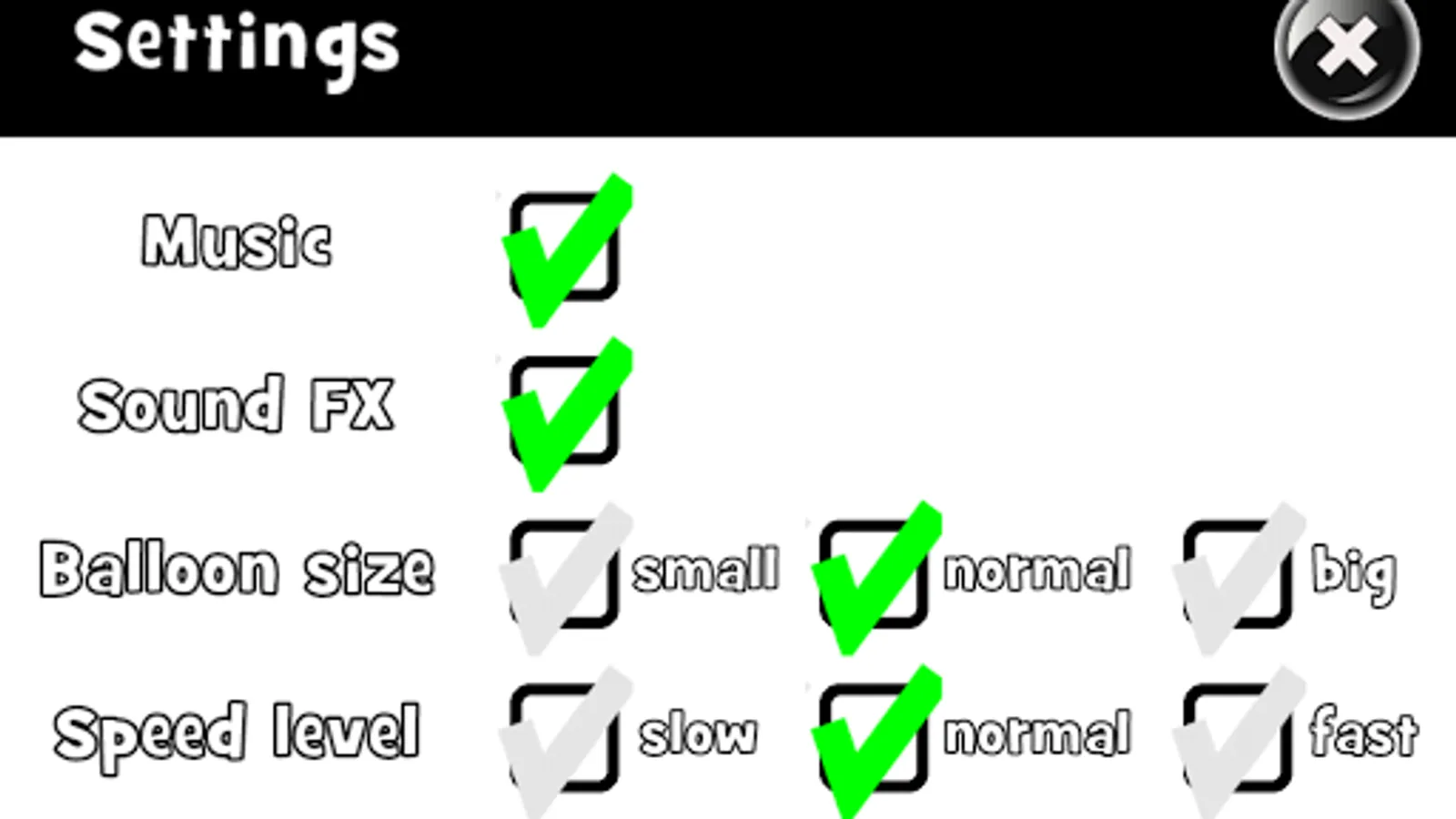 • You can disable music or sound fx and increase the size of the balloons in order to make them easier to pop.