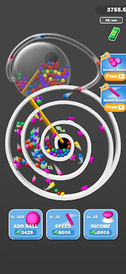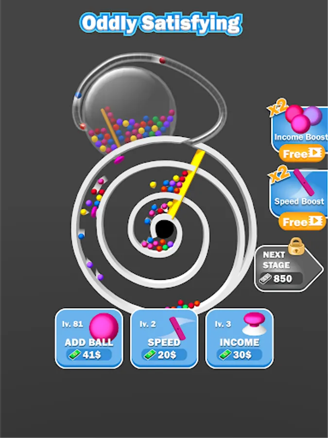 Colorful marbles in ASMR feelings.. Turn around many times in a spiral to see other balls! Easy and addictive game ever!