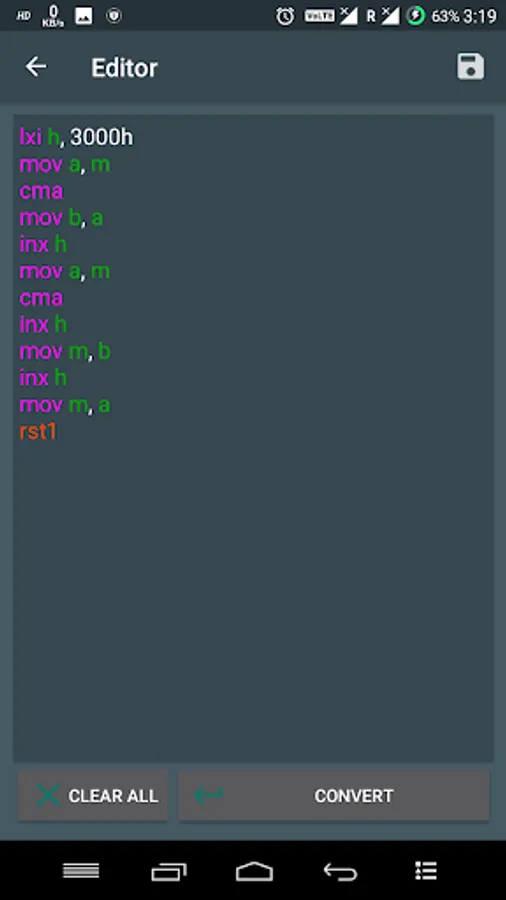 Get rid of continuously looking into manuals to find corresponding hex codes for your microprocessor programs. Feed your program to this app, and it will produce the hex codes for you!