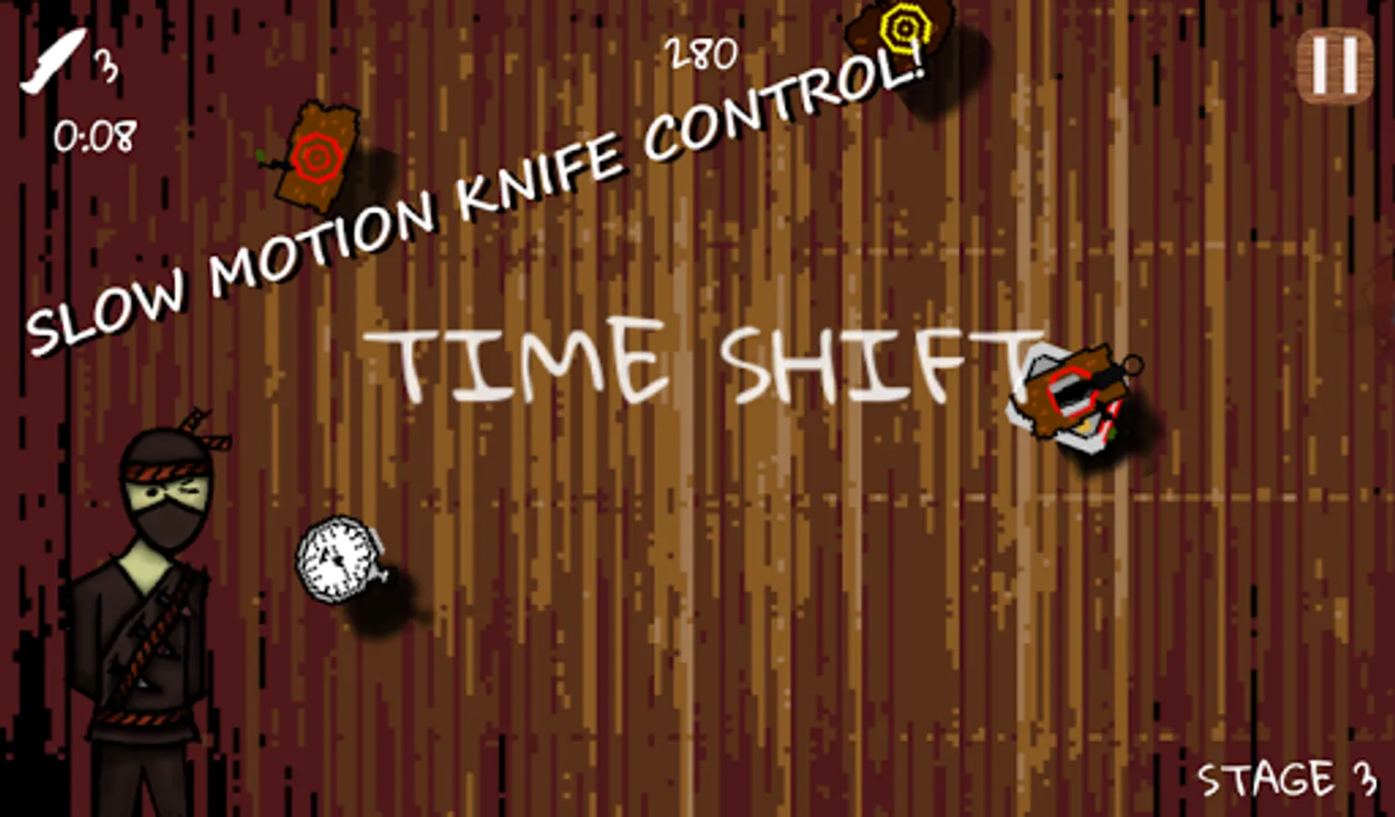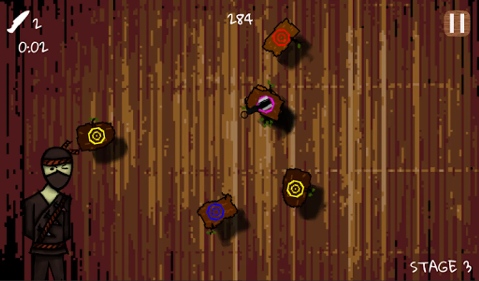 Help train this ninja in the art of knife throwing to unlock new weapons and earn