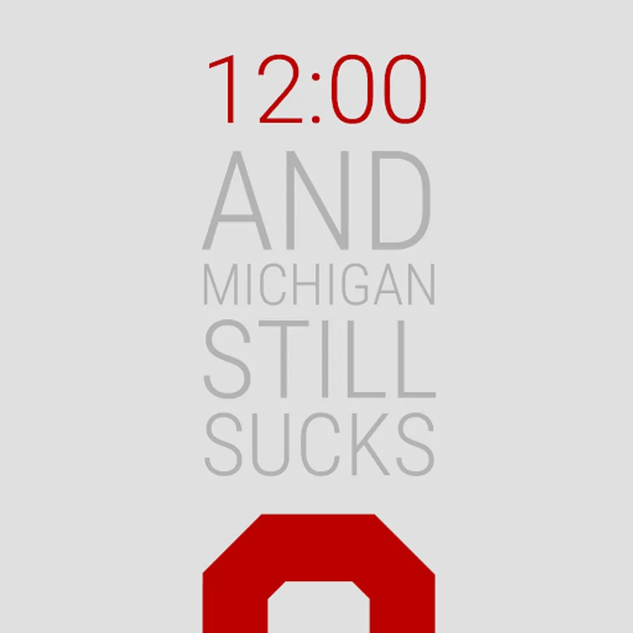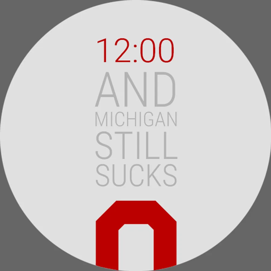 Ever wonder what time it is but also want to insult your storied rival in a local derby between amateur students? Never fear, Time and Change is here! Show your Buckeye pride with this excellent watch face. Now you can be informed of the time and mock TTUN in this totally hilarious and original way.