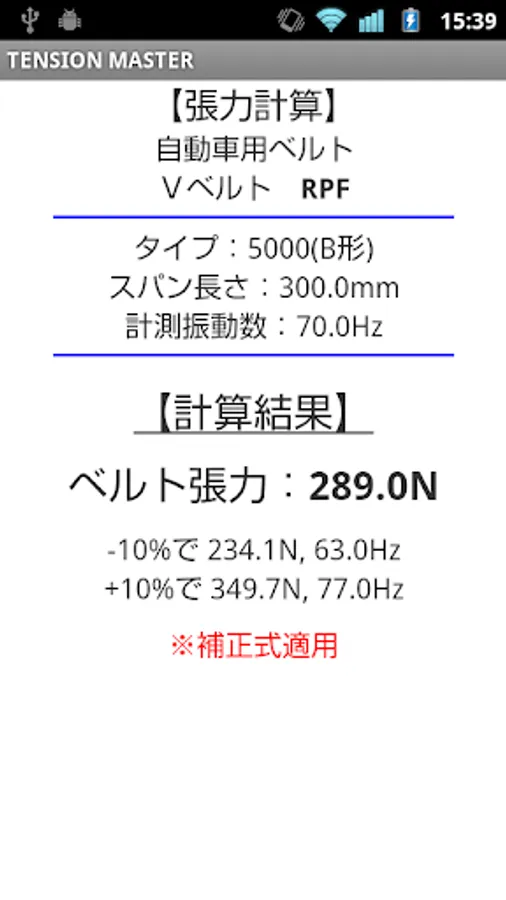 - The frequency of the power transmission belt that is attached to the actual equipment is measured using a tension meter sold separately "TENSION MASTER (tension Master)", when you enter the measurement results in this application it appears as tension.