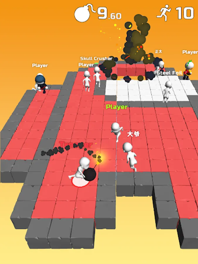 Even if you got the bomb, don't give up! Just run fast to reach your opponents and pass it back to one of them! Extremely simple rules: last man standing wins!