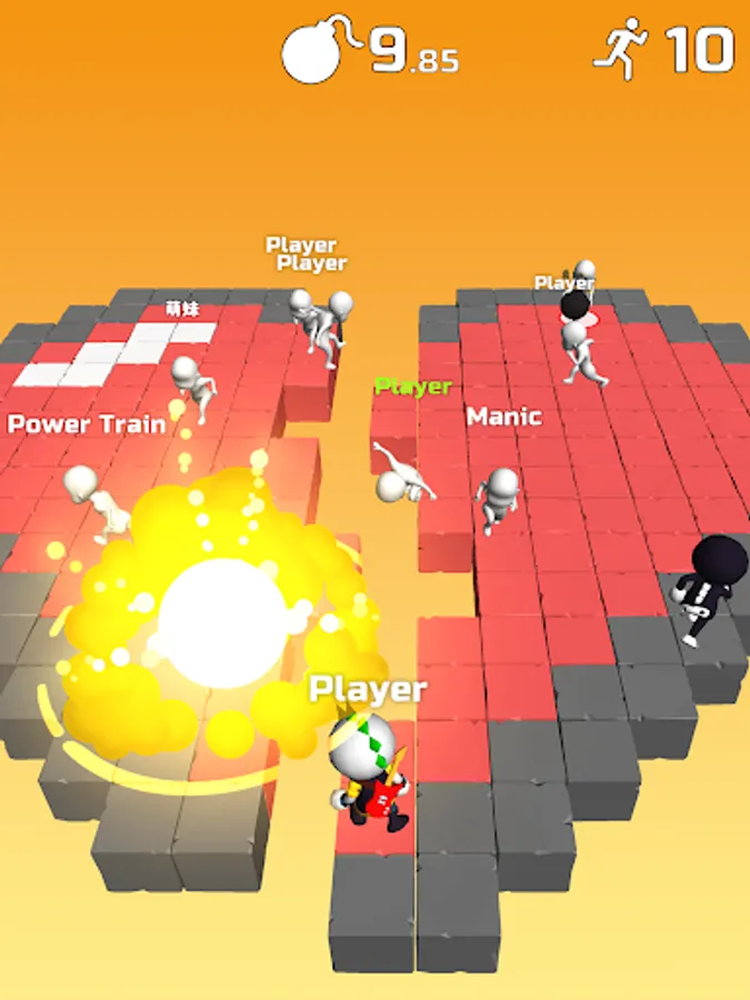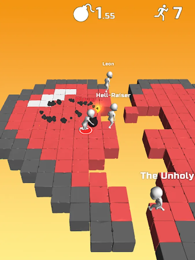 One arena, ten players and only one winner! You have to run on the platform as long as possible not to be caught by competitors with the bomb! But be careful: the bomb can explode and cause big holes in the arena! Jump to avoid them!