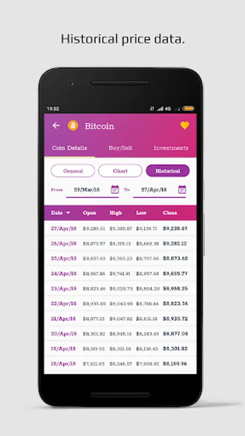 * Historical price data up to 2000 days for each Cryptocurrencies.