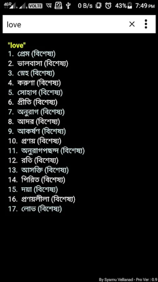 It is a bilingual dictionary with English to Bangla and Bangla to English Meaning which works completely offline. If you are reading EBook/PDF/Internet pages etc and have some doubt with word no need to minimize the thing you are reading. Simply select the word and copy. It will give you the result. It consists more than 12.7 lakh+ results (ML 3 Lakh + ENG 9.7 Lakh). It have most of the words which published by OED(Oxford University Press), Chambers , Collins, Longman, Macmillan and Merriam-Webster's Learner's Dictionary. The light weight version of this dictionary Bangla Dictionary Pro is available which is without English to English Meaning, Synonyms , Antonyms Etc.