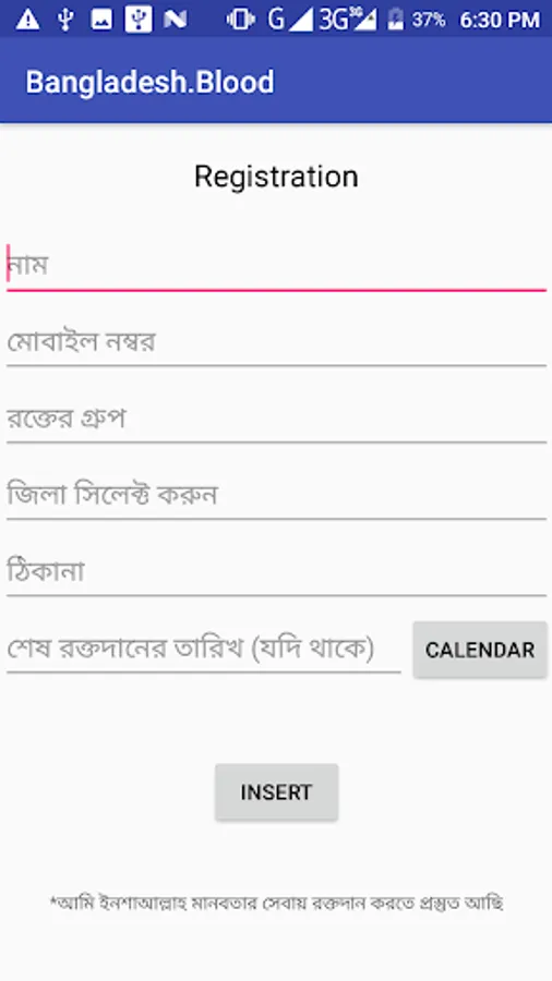 আসুন, আমরা বেশী বেশী করে লোকজনদেরকে এ্যাপটিতে রাক্তাদাতা হিসেবে নাম তালিকাভুক্ত করে দেই, ইনশাআল্লাহ। রক্তদাতা হিসেবে নাম তালিকাভুক্ত হয়ে থাকবে। এ্যাপটি মুছে ফেললেও সমস্য নাই, আবার ডাউনলোড করে নাম তালিকাভুক্ত করতে পারবেন এবং ইতিপূর্বে তালিকাভুক্ত করা সকল দাতাগণের নামও পেয়ে যাবেন। ইনশাআল্লাহ।