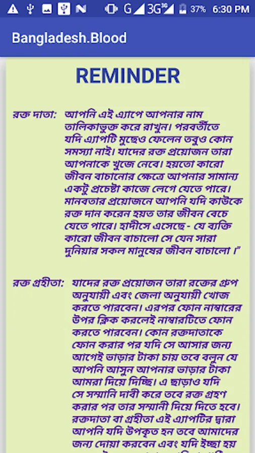 রক্তদাতা বা গ্রহীতা এই এ্যাপটির দ্বারা আপনি যদি উপকৃত হন তবে আমাদের জন্য দোয়া করবেন এবং যদি ইচ্ছা হয় তবে এই নম্বরে সামান্য হাদিয়া পাঠিয়ে দেবেন : বিকাশ পার্সোনাল : 01884597895