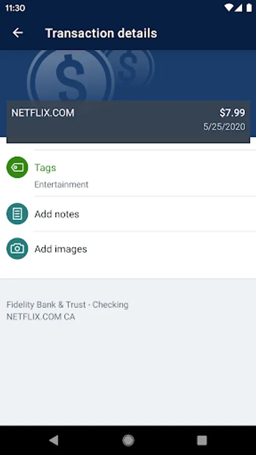 Keep your transactions organized by allowing you to add tags, notes and photos of receipts and checks.