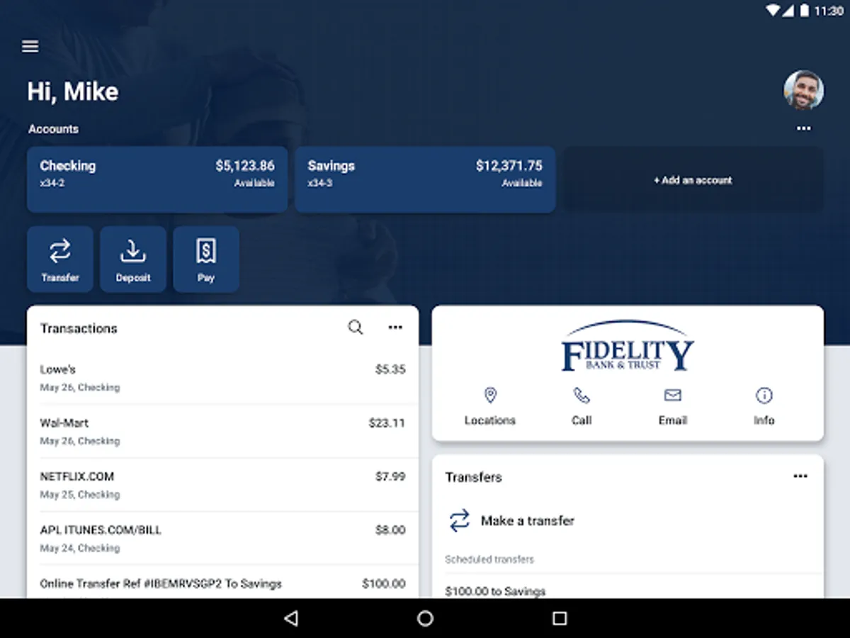 Fidelity Bank & Trust is your personal financial advocate that gives you the ability to aggregate all of your financial accounts, including accounts from other banks and credit unions, into a single view. It’s fast, secure and makes life easier by empowering you with the tools you need to manage your finances.