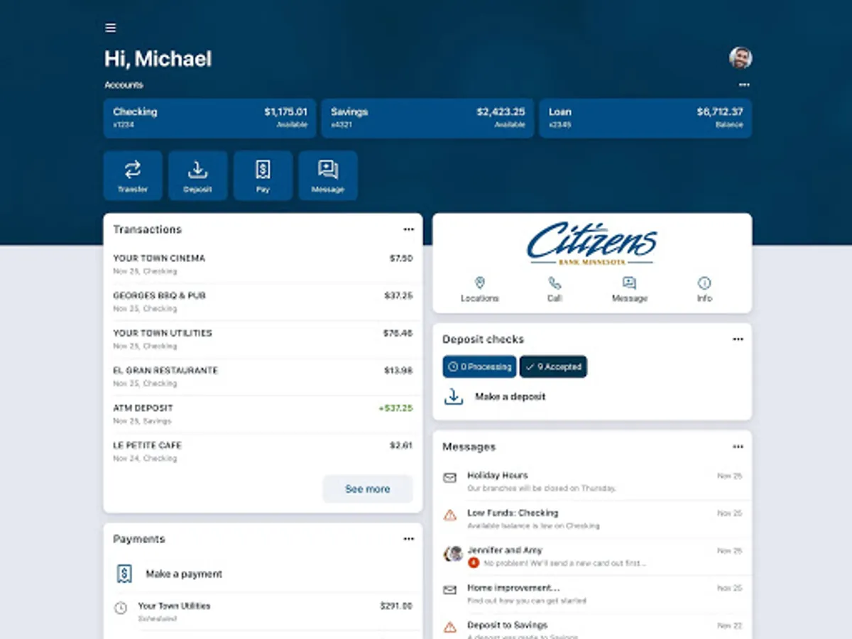 Citizens Bank MN is your personal financial advocate that gives you the ability to aggregate all of your financial accounts, including accounts from other banks and credit unions, into a single view. It’s fast, secure and makes life easier by empowering you with the tools you need to manage your finances.