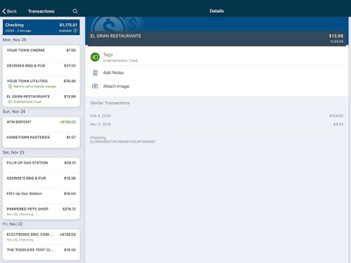 Keep your transactions organized by allowing you to add tags, notes and photos of receipts and checks.