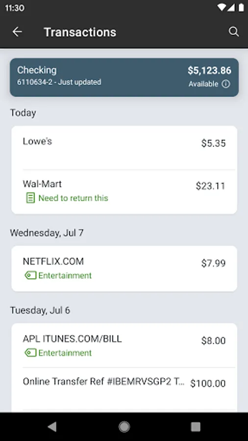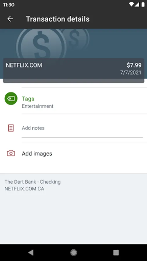 • Keep your transactions organized by allowing you to add tags, notes and photos of receipts and checks.