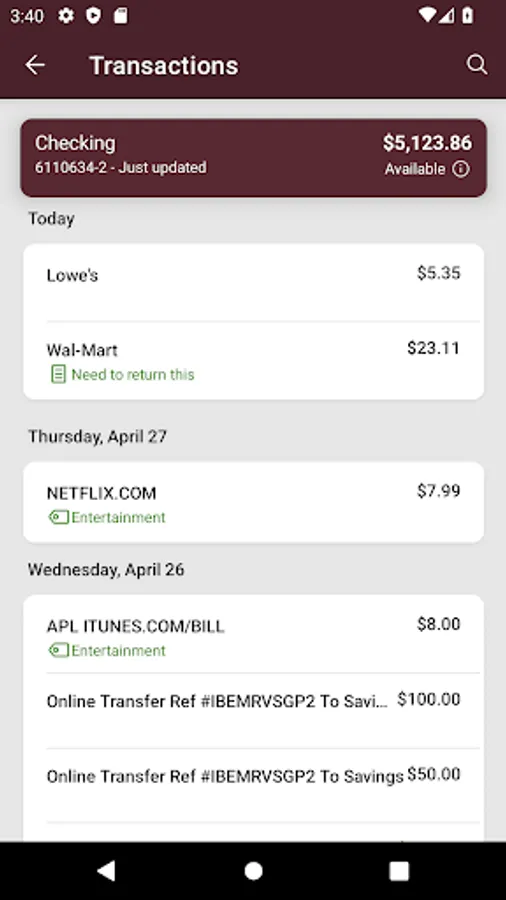 Easily transfer between accounts within your application or to/from your account at other financial institutions
