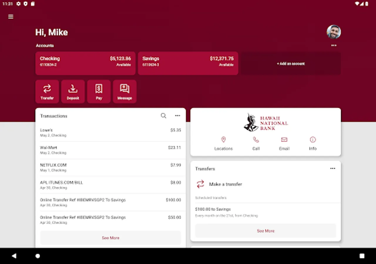 Hawaii National Bank Mobile Banking provides secure, 24/7 access to the banking features you use most, from wherever you are.