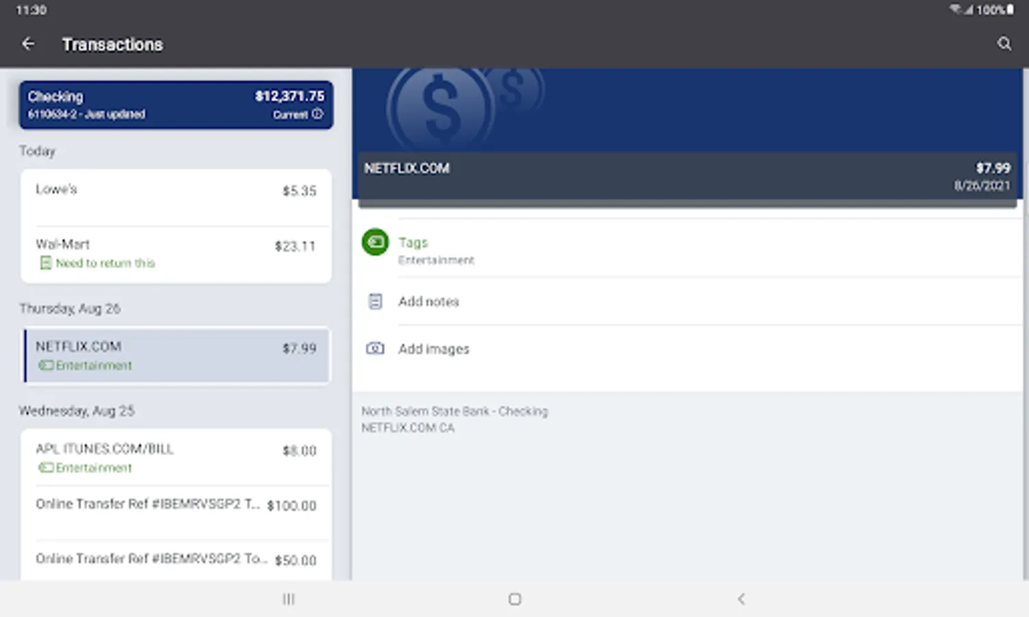 -Keep your transactions organized by allowing you to add tags, notes and photos of receipts and checks.
