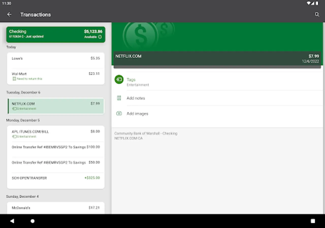 -Keep your transactions organized by allowing you to add tags, notes and photos of receipts and checks.