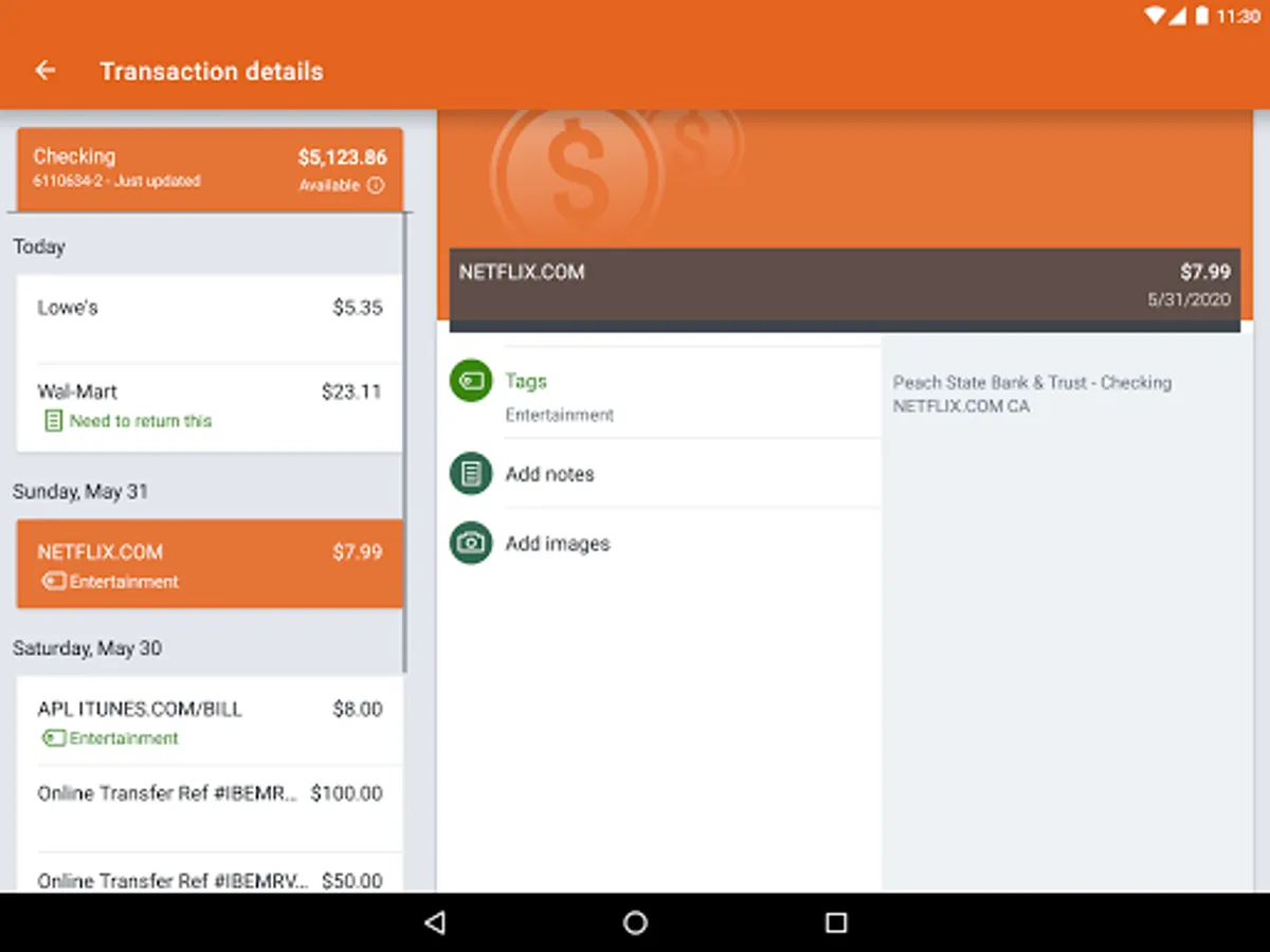 Keep your transactions organized by allowing you to add tags, notes and photos of receipts and checks.