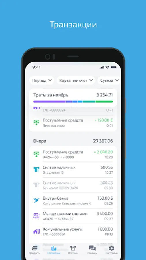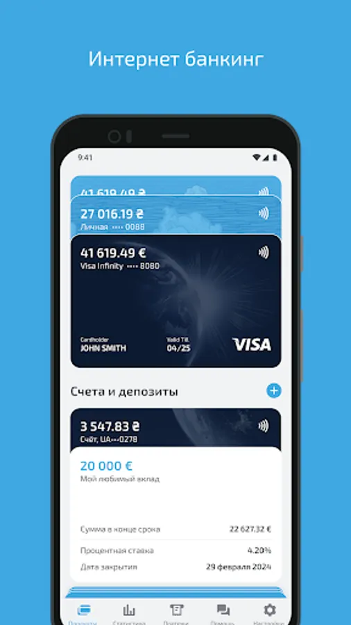 SkyBank is a Ukrainian online bank in your smartphone. The application gives individuals and legal entities instant access to debit and credit cards, deposits and payments. You do not need to go to the bank to track expenses, transfer money or invest - transactions are available on a smartphone. The application has all the necessary information on bank cards and details.