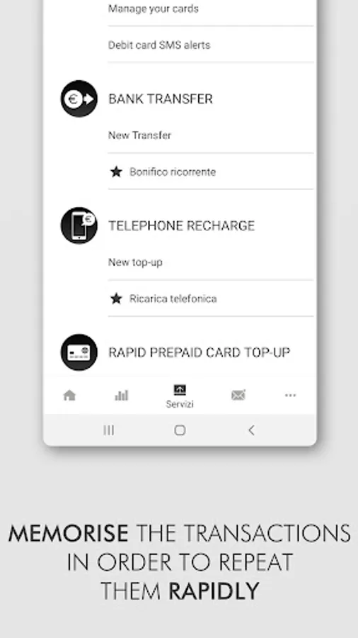 - In a few simple steps you can make bank transfers, pay bills, top up your phone and prepaid cards.