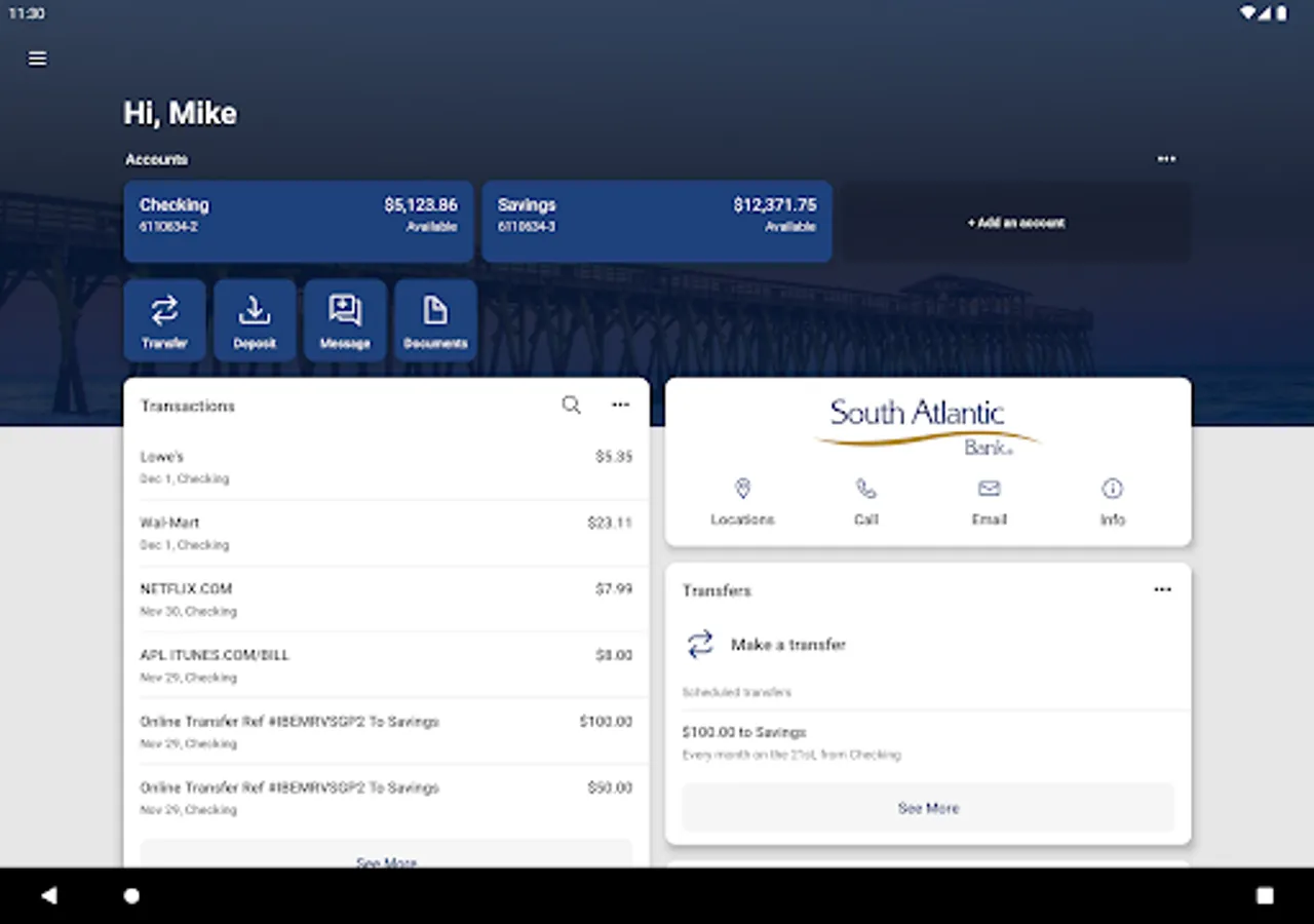 To use the South Atlantic goMobile app, you must be enrolled as a South Atlantic Bank digital banking user. If you currently use our Internet Banking, simply download the app, launch it, and login with the same Internet Banking credentials.