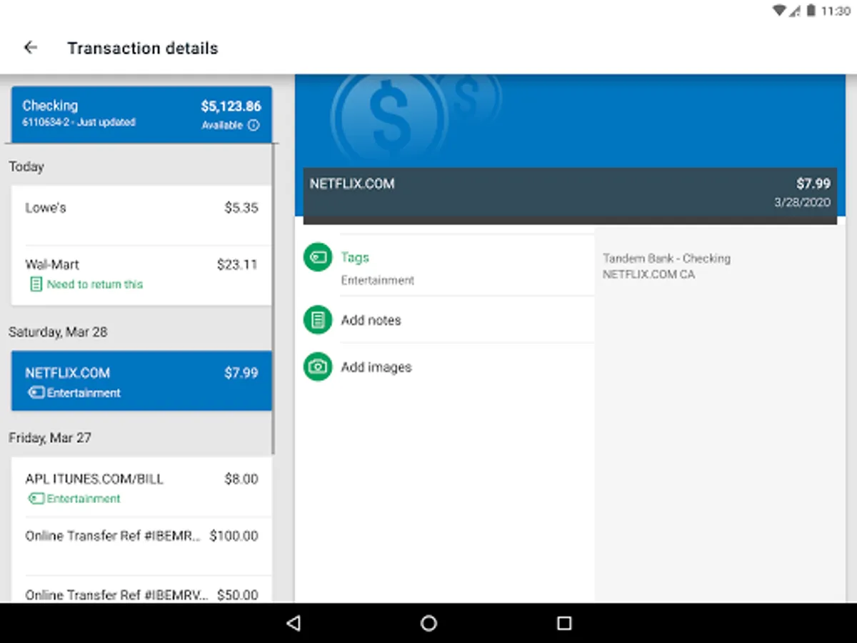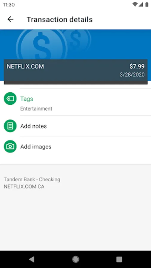 Keep your transactions organized by allowing you to add tags, notes and photos of receipts and checks.