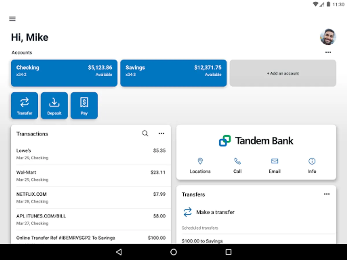 Tandem Bank is your personal financial advocate that gives you the ability to aggregate all of your financial accounts, including accounts from other banks and credit unions, into a single view. It’s fast, secure and makes life easier by empowering you with the tools you need to manage your finances.