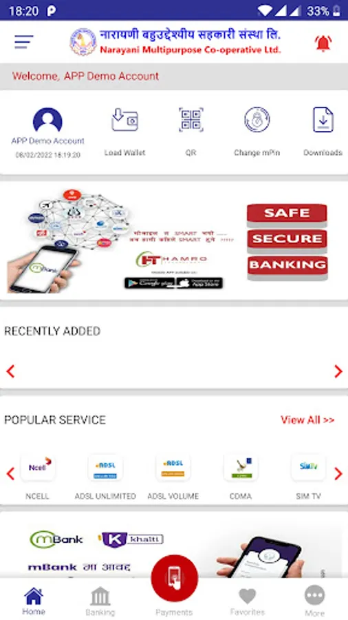 Narayani Mobile App is an official mobile application of Narayani Multipurpose Co-operative Limited. which facilitates the user for various utility payment and mobile recharge/ topup for different telecom service provider like Nepal telecom, Ncell, CDMA as well as mobile banking features.
