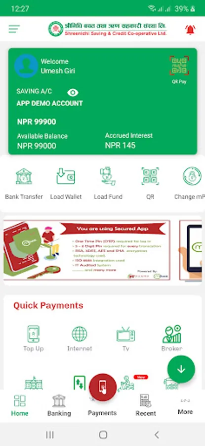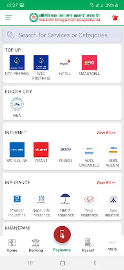 Shreenidhi Mobile App provides different banking solution as well as facilitating utility payment and mobile recharge/ topup for different telecom service provider like Nepal telecom, Ncell, CDMA for the account holders of Shreenidhi Saving and Credit Co-operative Ltd.