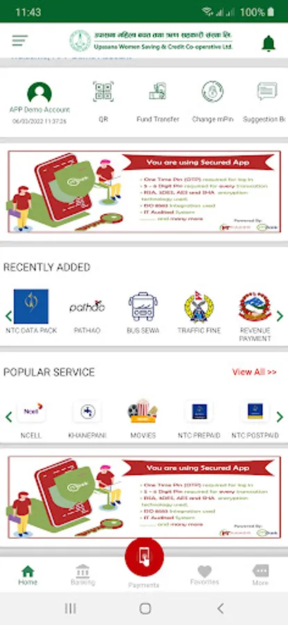 Upasana Smart App is an official mobile application of Upasana Women Saving and Credit Cooperative Ltd. which facilitates the user for various utility payment and mobile recharge/ topup for different telecom service provider like Nepal telecom, Ncell, CDMA as well as mobile banking features.
