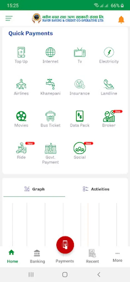 Navin Mobile Banking provides different banking solution as well as facilitating utility payment and mobile recharge/ topup for different telecom service provider like Nepal telecom, Ncell, CDMA for the account holders of Navin Saving and Credit Co-operative Ltd.