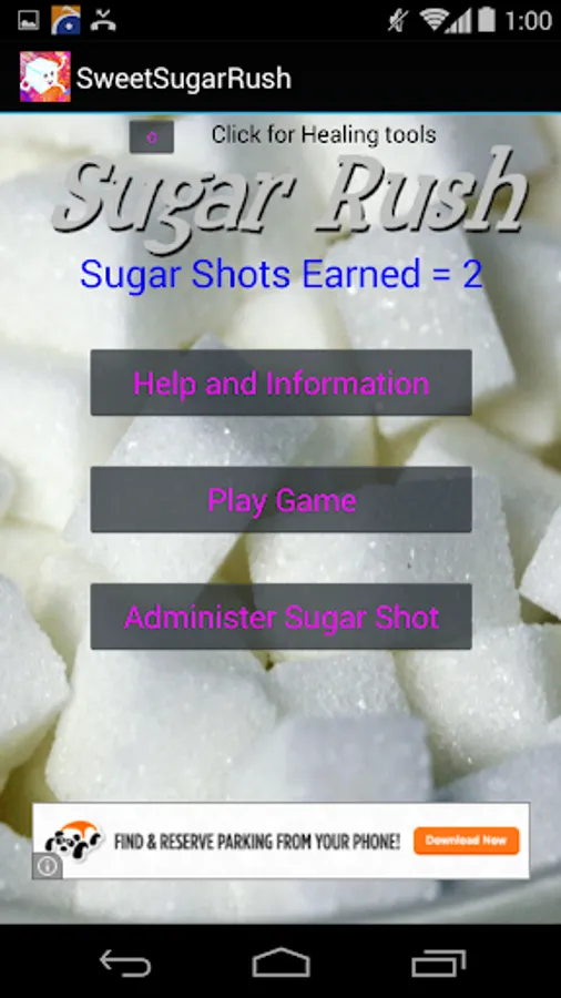 Sweet Sugar Rush is a unique dual mode App that uses a game and a healing to relieve tension and give yourself an Energy Sugar Rush to control your Sugar craving or other types of cravings.