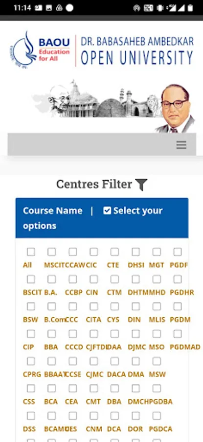 Dr. Babasaheb Ambedkar Open University, Ahmedabad BAOU offers many courses ranging from Certificate course to Doctor of Philosophy.