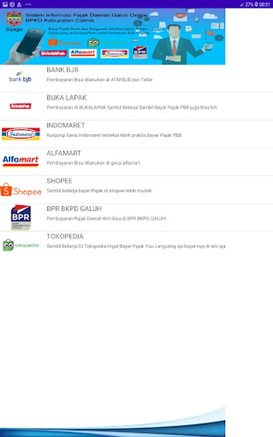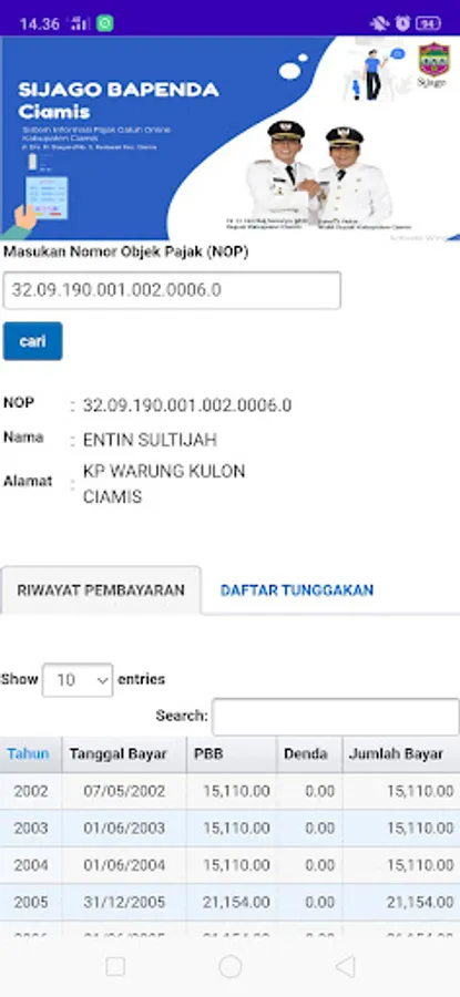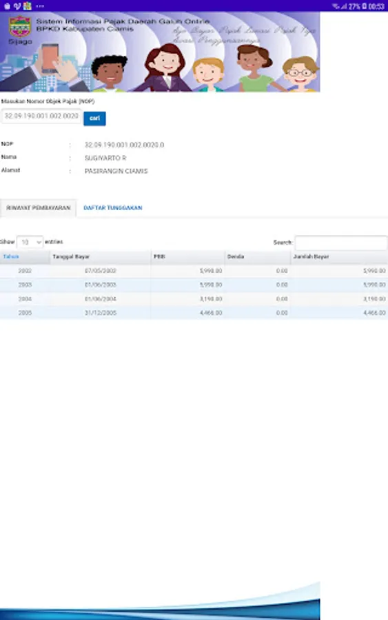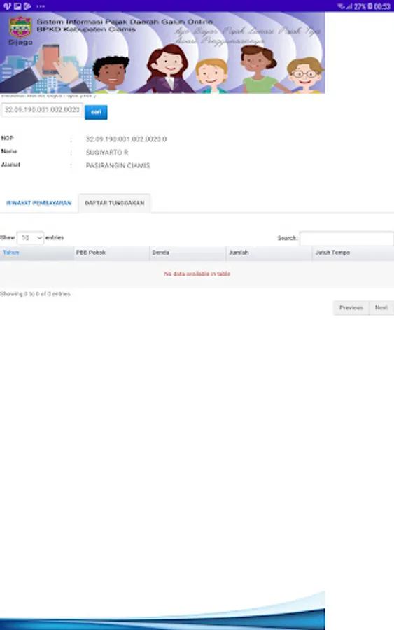 Sijago Bapenda Ciamis is an application to provide information and educate about local taxes where the user or users can see the history of land and building tax payments and to make it easier for notaries / ppat in managing their land.