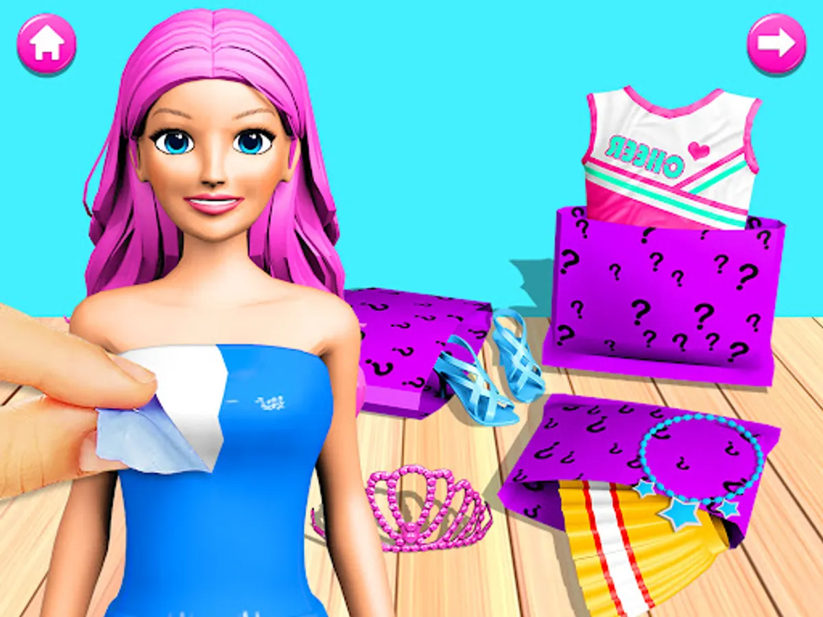Follow the gesture prompts and open the surprise bags. Dress Aileen up in the different themes.