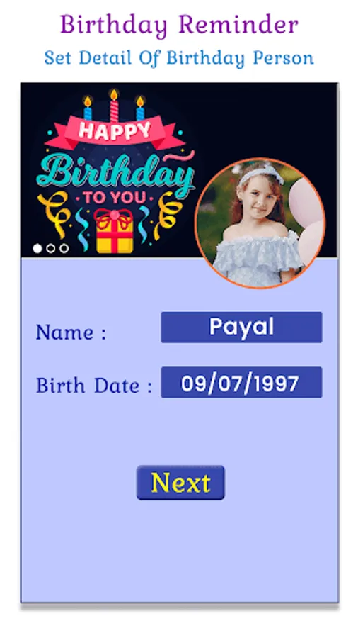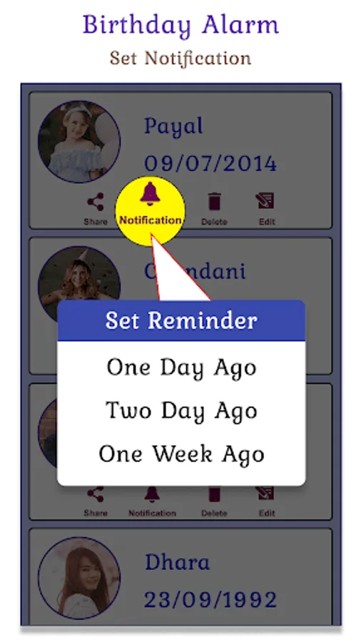 This is best birthday reminder app helps to reminds your friends' and family's birthdays, anniversaries, marriage days, engagement days, festivals, and other important dates easily and get notification on your mobile phone one day ago, two day ago and one week ago as per your choice. if you forgot date of birth then birthday reminder with alarm app helps you to remind birthday and send birthday wishes to your friend's and family member.