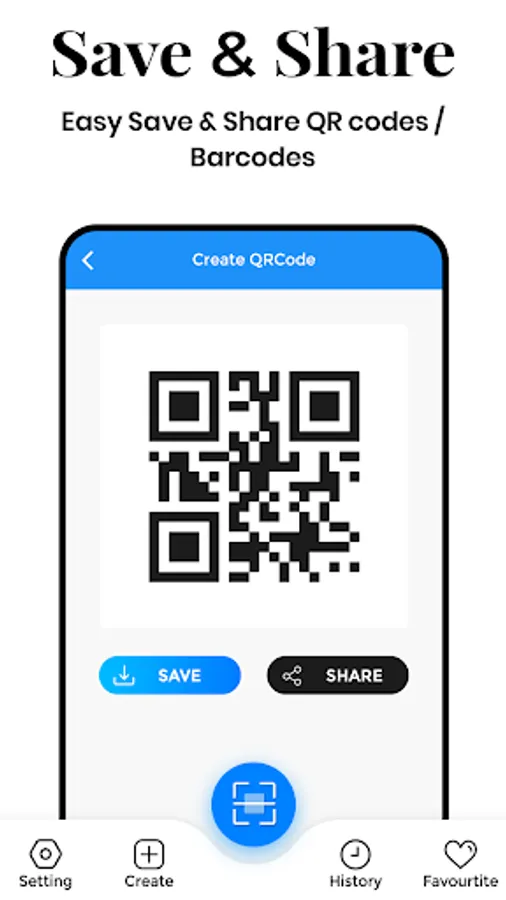 QR code generator feature: you can generate QR code and allows you to save, share code you just created.