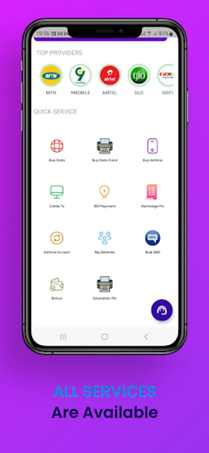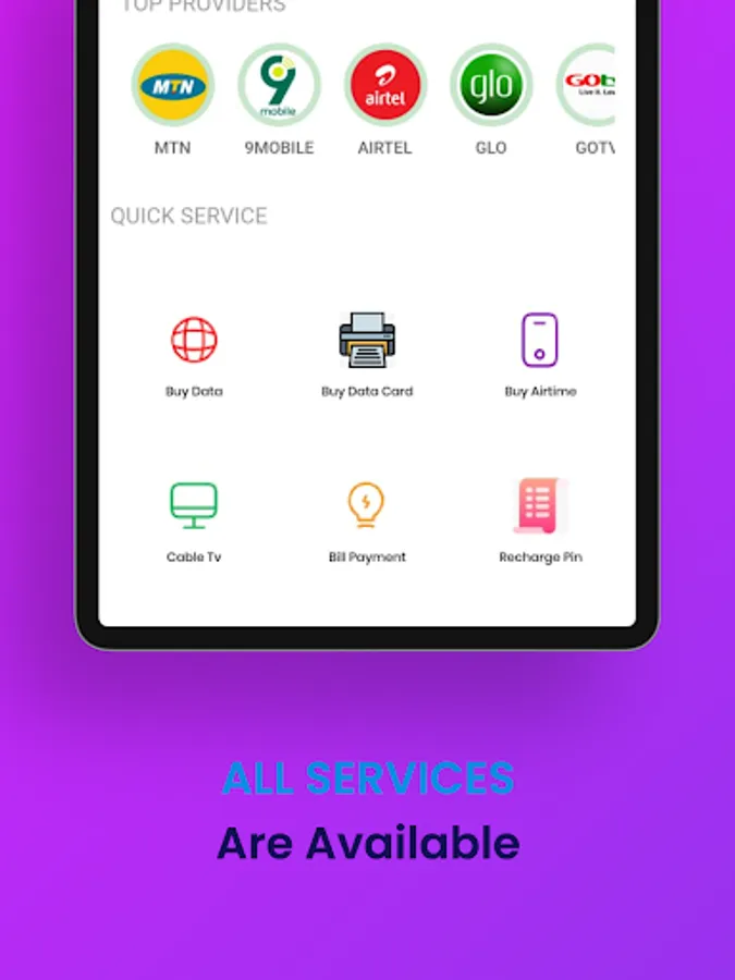 We offer instant recharge of Airtime, Databundle, CableTV (DStv, GOtv & Startimes), Electricity Bill Payment and more