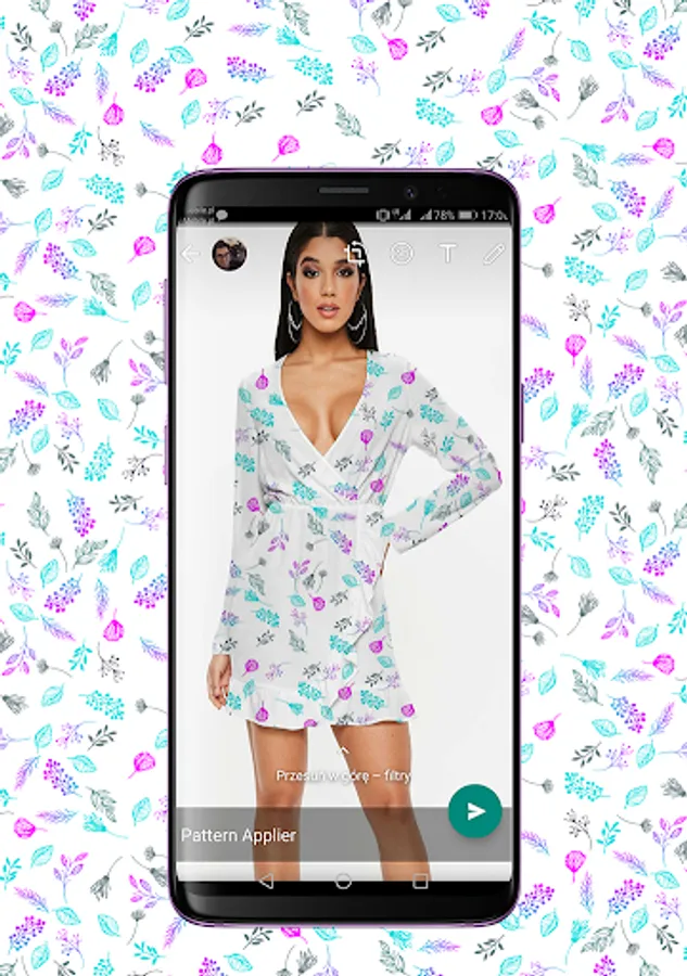 Without putting too much effort using Pattern Applier you can see how the material you have chosen will look like on a real piece of clothing. All your favorite results can be saved in your phone and later shared with others by WhatsApp, Messenger or email.