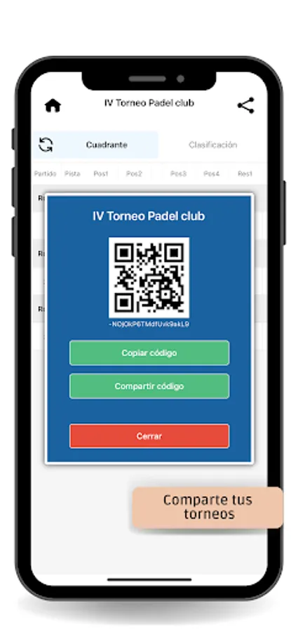 We know that sharing the excitement and tension of a paddle tournament with others can amplify the fun, and that's precisely what Padel Share allows you to do. Our sharing feature gives you the ability to generate a unique code or QR code that you can share with whomever you wish. Moreover, we've included a QR code reader in the app to make accessing tournament information easy for all users.